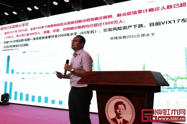 嘉實基金華南區(qū)域總經(jīng)理陳寒夢為現(xiàn)場客戶作投資分析報告