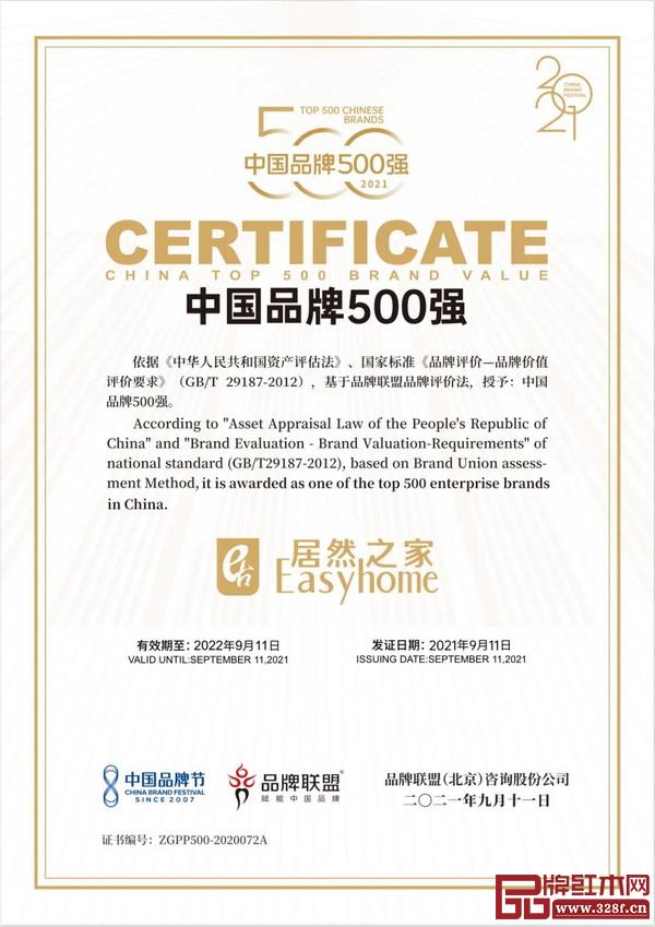 近日,居然之家獲評2021中國品牌節(jié)最高榮譽“華譜獎”,并從消費者角度、財務角度和市場角度等多維度評價下,在16000余個本土品牌(包含港澳臺地區(qū))中脫穎而出,被評為“中國品牌500強”。