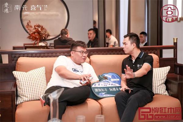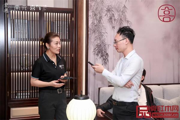 蘇陽紅集團董事長助理王力在展廳進行產(chǎn)品知識講解,分享紅木產(chǎn)品背后所蘊含的文化底蘊,講述紅木產(chǎn)品與中國傳統(tǒng)文化之間不可分割的關(guān)聯(lián)!
