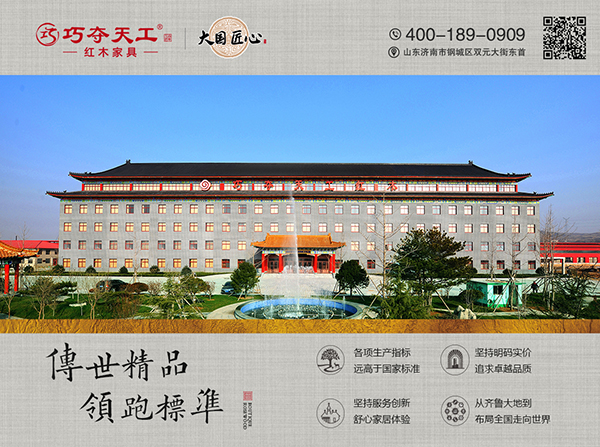齊魯文化圣地山東,是業(yè)界公認(rèn)的紅木家具消費第一大省。在這里,有一家中國傳統(tǒng)家具當(dāng)代制造的標(biāo)桿企業(yè),它就是巧奪天工紅木。作為傳統(tǒng)工藝的制造企業(yè),巧奪天工紅木卻提出了“科技領(lǐng)先 標(biāo)準(zhǔn)領(lǐng)跑 服務(wù)創(chuàng)新”,用現(xiàn)代視野打造精品紅木家具,做到標(biāo)準(zhǔn)化生產(chǎn)。