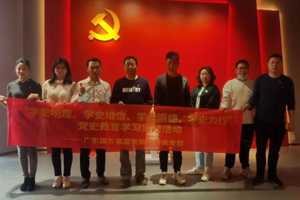傳承紅色基因,汲取前進(jìn)力量。國(guó)方家居黨支部將以此次活動(dòng)為契機(jī),加強(qiáng)黨史學(xué)習(xí),弘揚(yáng)黨的優(yōu)良傳統(tǒng),堅(jiān)定理想信念,砥礪前行。立足自身崗位,守初心,擔(dān)使命,奮發(fā)有為地推進(jìn)公司高質(zhì)量的發(fā)展貢獻(xiàn)力量。