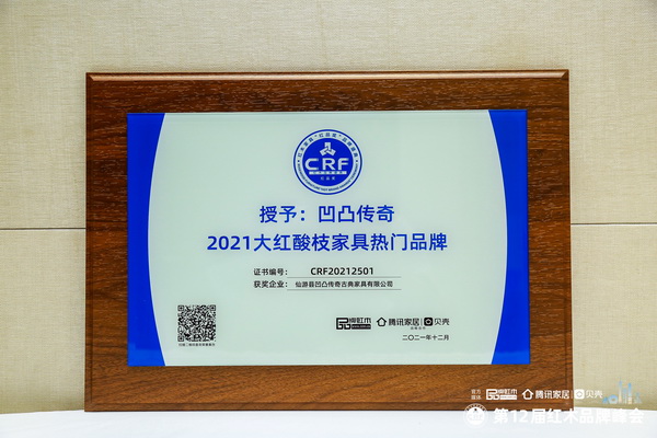 凹凸傳奇連續(xù)2年榮獲“2021大紅酸枝家具熱門品牌”