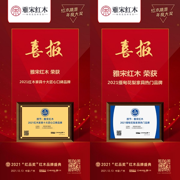 雅宋紅木始終朝著篤定的方向一路前行,無論是“紅木家具十大匠心口碑品牌”還是“緬甸花梨家具熱門品牌”這一切都來之不易,也意義深遠(yuǎn)。期待雅宋紅木借紅木品牌峰會(huì)之勢(shì),繼續(xù)強(qiáng)化品牌,精心布局,2022年再創(chuàng)新輝煌。