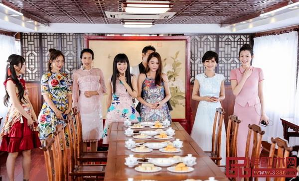 ▲《我們來(lái)了》蘇州站,趙雅芝、莫文蔚、謝娜等一眾明星品嘗蘇州特色糕點(diǎn)時(shí),中間的大長(zhǎng)桌就是由一張張八仙桌拼成的。