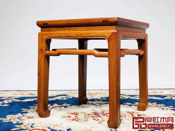 同款方凳仿自王世襄《明式家具珍賞》中同款方凳,與上述八仙桌造型一致,器型雖小,卻有大器風(fēng)采,古樸而不失雅致。