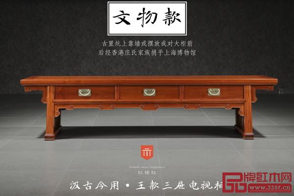 兩百多年后,當(dāng)這件炕案原汁原貌穿越到今天,與現(xiàn)代生活方式結(jié)合后,卻有了另一種全新的功能——電視柜。