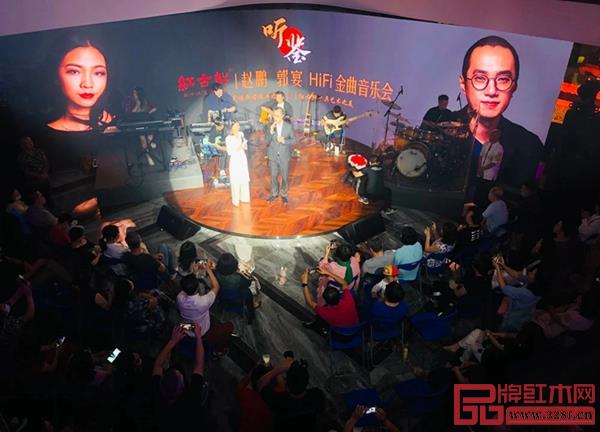 5月1日,在紅古軒全新打造的中式美學(xué)空間,一場HiFi金曲音樂與新中式紅木家具深度交融的視聽盛宴激情上演?!叭寺暤鸵襞凇壁w鵬、“黑膠天后”郭宴,兩位享譽HiFi音樂界的靈魂歌手親臨紅古軒,為廣大音樂發(fā)燒友與新中式紅木家具愛好者帶來頂級的音樂藝術(shù)享受,現(xiàn)場氣氛熱烈、掌聲雷動。