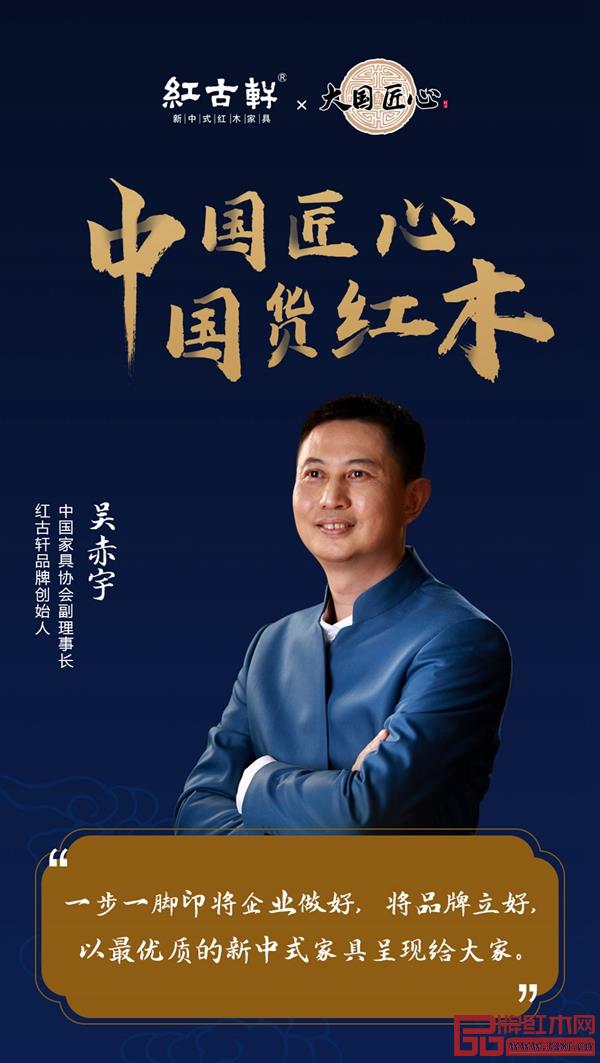 5月10日,第五個中國品牌日,《大國匠心》欄目與紅古軒以“中國匠心 國貨紅木”主題,一起發(fā)出中國紅木品牌年度最強音——讓國貨紅木走進更多中國人的家,讓世界愛上中國紅木!“一步一腳印將企業(yè)做好,將品牌立好,以最優(yōu)質(zhì)的新中式家具呈現(xiàn)給大家?!奔t古軒品牌創(chuàng)始人吳赤宇如是說。