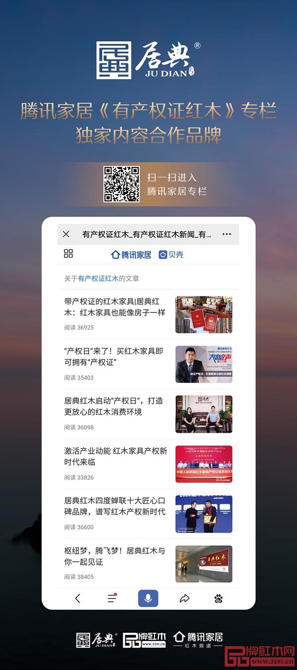 居典紅木受邀成為騰訊家居《有產(chǎn)權(quán)紅木》專欄獨(dú)家內(nèi)容合作品牌