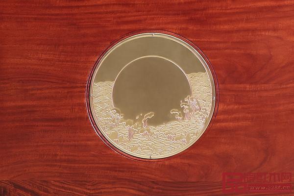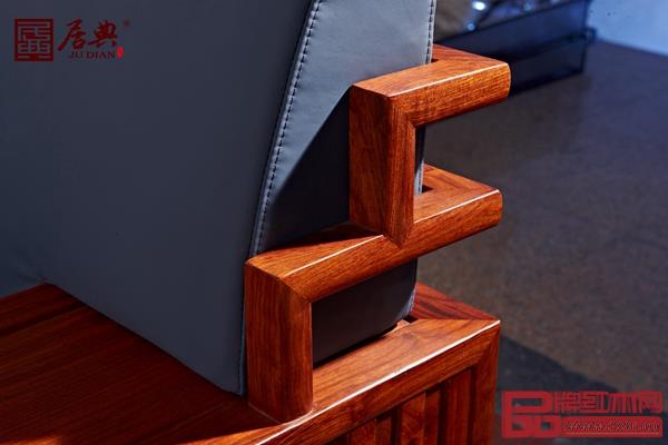 單人位沙發(fā)扶手一側,鑲嵌銅片,銅片上有中式海浪紋雕刻,蘊含著福如東海、積極向上的吉祥寓意。擁有這套沙發(fā),對新的一年又有了更多美好的期許。