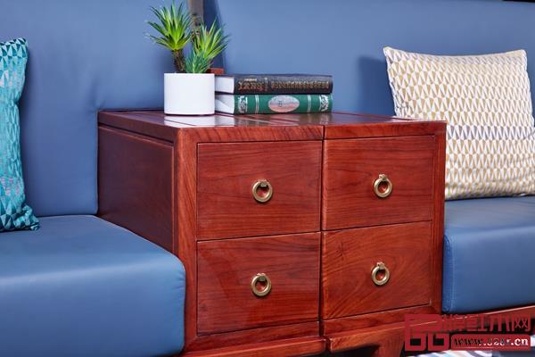 此款沙發(fā)具有極強的收納功能,共有20個抽屜。每件沙發(fā)左右兩側均配有上下兩層的收納抽屜。