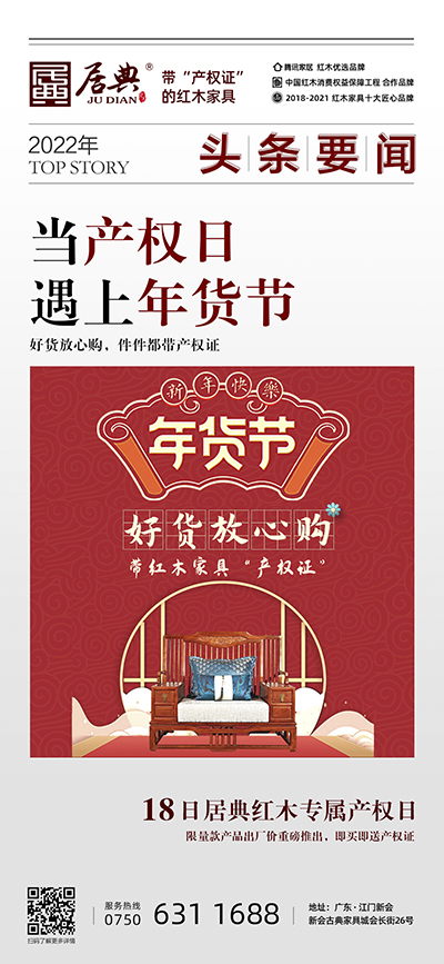為了能讓更多消費者放心享用國貨紅木,體驗中式家居美學,讓家更有中國“年味兒”,江門市居典紅木家具有限公司(以下簡稱居典紅木)將舉行紅木家具“產權日”與年貨節(jié)雙節(jié)同慶活動,不僅眾多精品紅木家具享年貨節(jié)超值價格,還免費送紅木家具“產權證”。為此,小編走進居典紅木展廳,替大家整理了居典紅木年貨好物推薦清單,一起看看吧!