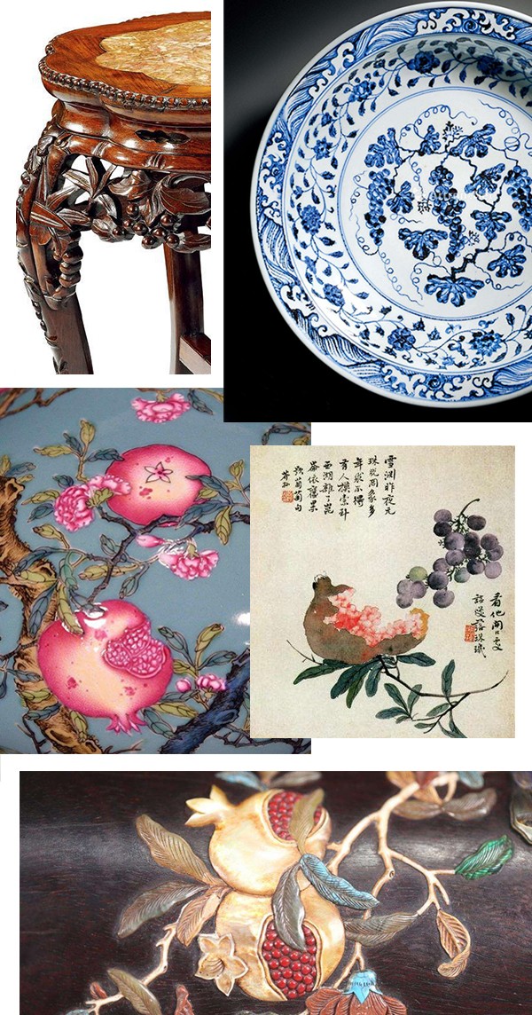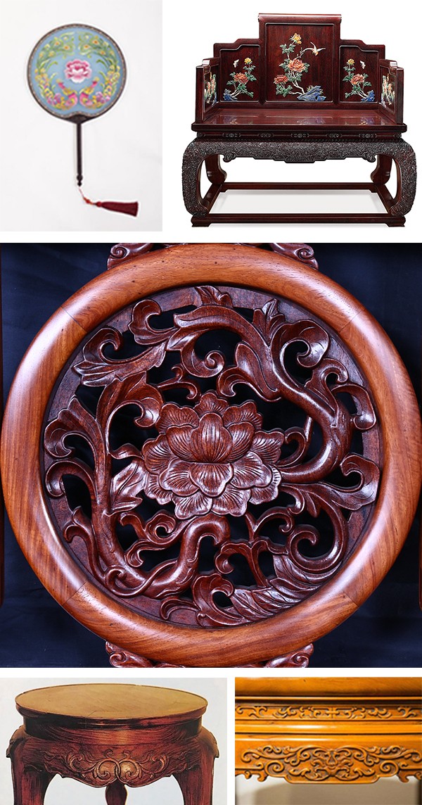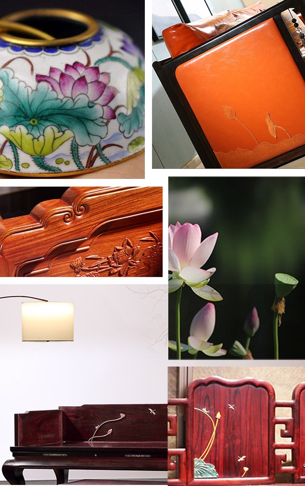紅木家具、陶瓷等時常可見的物品上,就有各種寄托了吉祥和美好寓意的裝飾紋飾,它們一般來自吉祥的動植物、神話幻獸、生活文化、文字繪畫等。