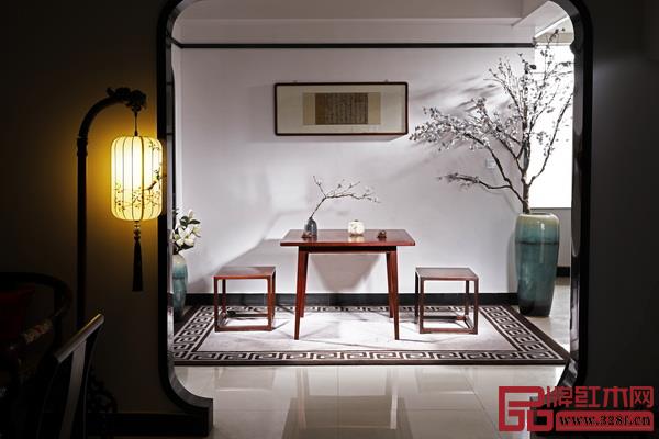 如果空間足夠,還可以放置一張歡迎桌,讓椅子和桌子成為核心﹐將玄關(guān)改造為多功能室,可用作簡單會客﹐亦可焚香、插花、點(diǎn)茶,提供一個(gè)完美精致的氛圍體驗(yàn)。
