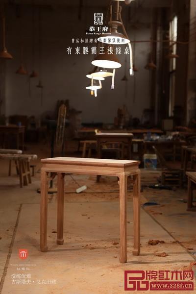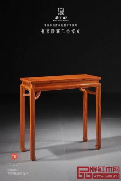 [摘要]恭王府有束腰霸王棖小條桌為艾克舊藏,曾佑和教授2006年捐贈北京恭王府的七件明式黃花梨家具之一,福建省紅橋紅家居有限公司(以下簡稱緬花大王紅橋紅)經(jīng)典復(fù)刻此條桌,桌面格角攢邊打槽平鑲面心,下裝穿帶出梢支承,大邊半透榫,做法尚古。