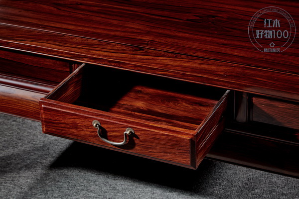 萬(wàn)事紅品牌專研微凹黃檀家具十五載,建立了引領(lǐng)微凹黃檀家具生產(chǎn)的工藝標(biāo)準(zhǔn)。家具使用傳統(tǒng)榫卯結(jié)構(gòu)組裝,堅(jiān)固耐用,家具無(wú)論里外、有無(wú)雕刻的部位,統(tǒng)統(tǒng)經(jīng)過(guò)打磨、刮磨至線條清晰、手感光滑。