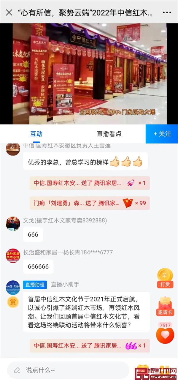 本次直播,還回顧了2021年首屆中信紅木文化節(jié),并通過這場終端聯(lián)動活動表彰了經(jīng)銷商們在活動中的積極舉措。