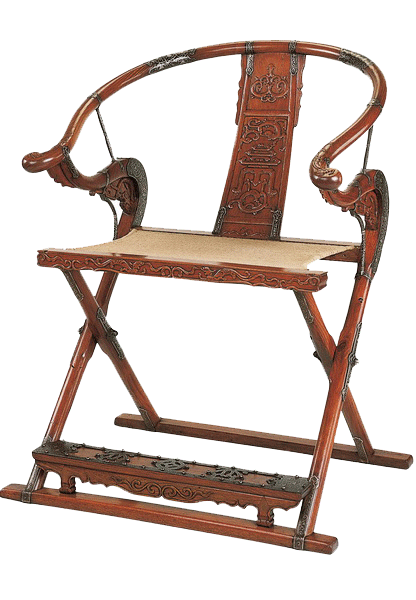 交椅是古時(shí)一種可以折疊的輕便坐具,由來已久。四川省廣元市宋慕出土石雕上的“肩負(fù)交椅男侍者”和江西省樂平市宋慕壁畫中人物像上都有交椅形象。