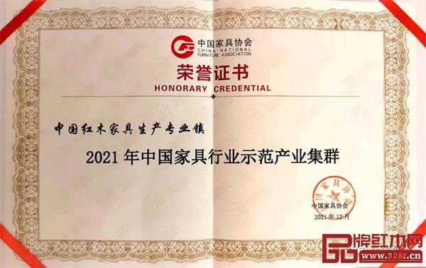 大會(huì)上,中國(guó)家具協(xié)會(huì)對(duì)一批表現(xiàn)突出的優(yōu)秀單位進(jìn)行了表彰,中國(guó)紅木家具生產(chǎn)專業(yè)鎮(zhèn)——大涌,榮獲“2021中國(guó)家具行業(yè)示范產(chǎn)業(yè)集群”稱號(hào)。