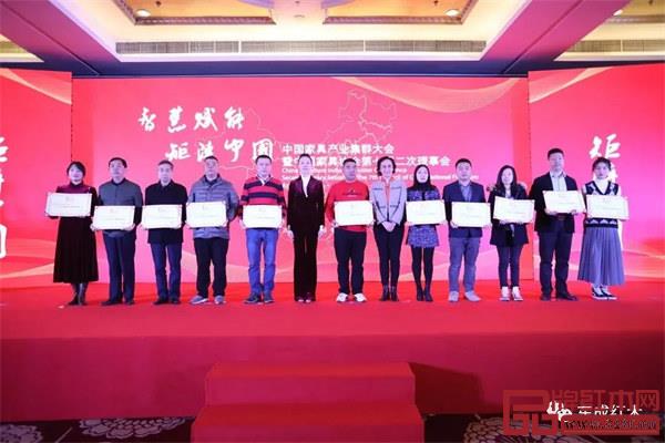 張冰冰副理事長(zhǎng)、屠祺副理事長(zhǎng)兼秘書(shū)長(zhǎng)為2021年中國(guó)家具產(chǎn)業(yè)集群品牌企業(yè)頒證