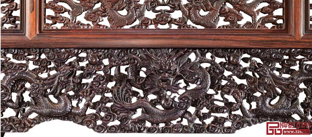 此龍床通體采用紫檀而制,耗料達(dá)3噸。紫檀是極為珍貴的木料,制作六柱龍床這樣的家具,更需要大量的紫檀大料;而紫檀大料難得,做成大器亦難得。制作這款龍床,為了在工藝上達(dá)極致的繁復(fù)精美,其用料奢侈,不惜工本,數(shù)百道工序均由4個(gè)有著數(shù)十年木工技藝的老師傅純手工、耗時(shí)2年而成。