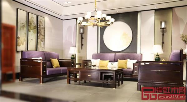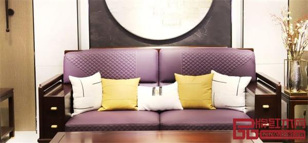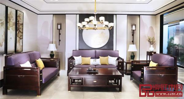 【君道2號(hào)沙發(fā)】沿用居境系列主打的栗子色為基調(diào),透過(guò)刺猬紫檀天然的木材紋理,將空間的優(yōu)雅、穩(wěn)重之感盡數(shù)烘托。