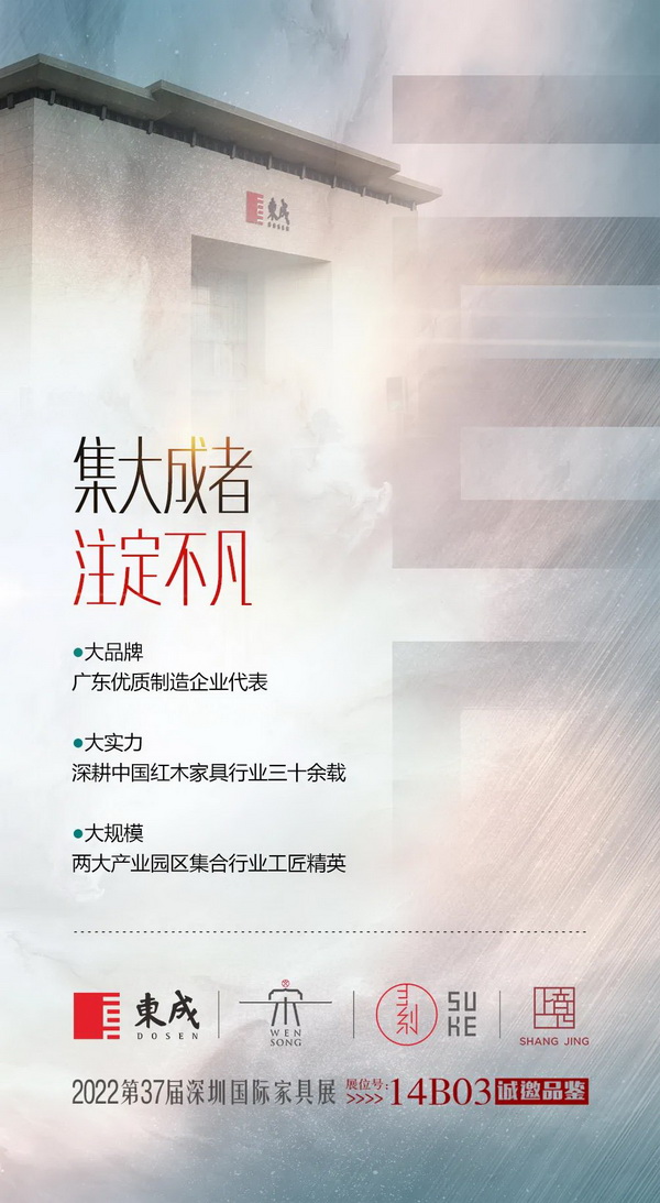 2022年深圳國際家具展依舊在堅持“設計導向、潮流引領、持續(xù)創(chuàng)新”的理念上前行。作為深耕紅木家具行業(yè)32載的領導企業(yè),東成紅木將攜旗下三大品牌耀世呈獻,在展現(xiàn)家居原創(chuàng)精髓的同時,探索更多當代家居風格的可能性,為全球觀展商家?guī)硪粓鲆I東方美學新風尚的家居生活饕餮盛宴。