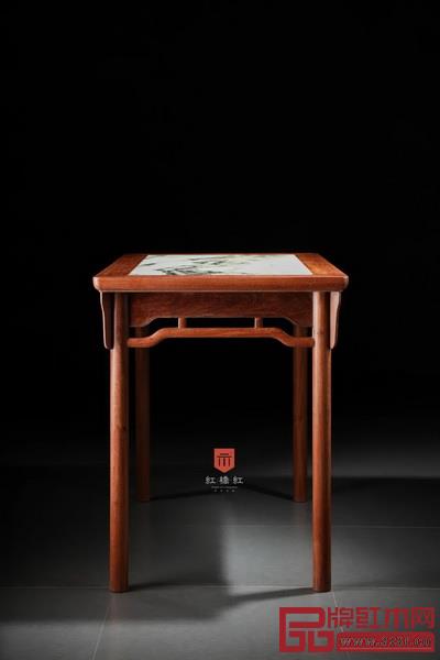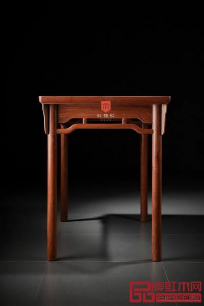 腿子之間安牙條,牙條下帶羅鍋棖,故又叫“一腿三牙羅鍋棖”。它是從宋代的只有兩面對稱的案形結體方桌發(fā)展而來。
