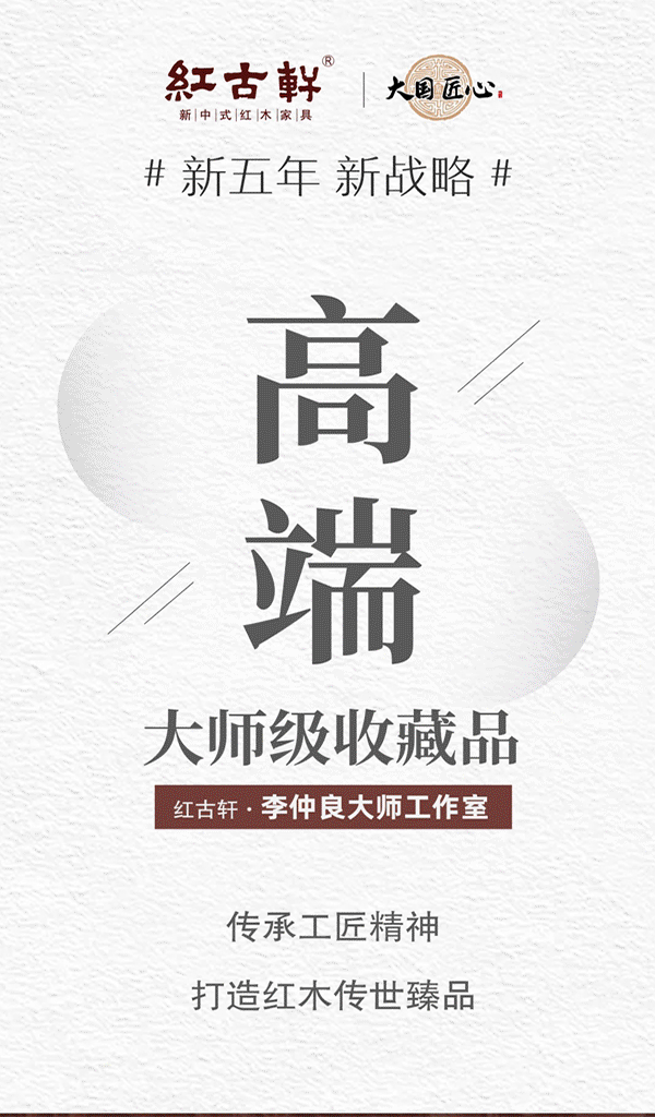 當(dāng)今市場(chǎng)瞬息萬變,粗放式的高速增長(zhǎng)已成為過去。在未來的新形勢(shì)下,紅古軒將繼續(xù)堅(jiān)持以用戶為中心,立足大師級(jí)高端收藏品、高端新中式紅木家具、紅木全案高端整裝三大品類,致力于成為高品位中式家居生活的提供者,打造當(dāng)代中國(guó)人的生活方式。