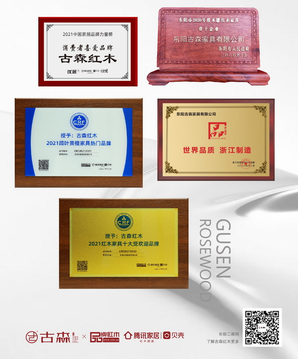 浙江制造品字標(biāo)、紅木家具十大受歡迎品牌、中國家居品牌力量榜消費(fèi)者喜愛品牌……載譽(yù)無數(shù)!