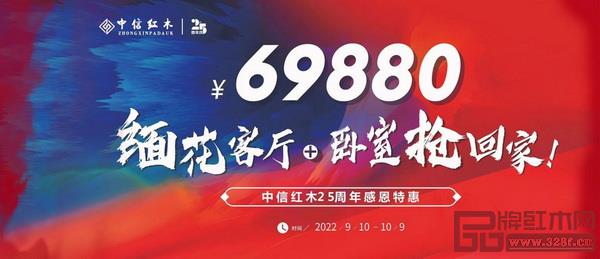 伴隨著中秋佳節(jié)的到來,中信紅木鉅惠讓利,9月10日-10月9日,千余款紅木家具款式齊全,更有緬花客廳+臥室69880搶回家等活動,讓人們能以優(yōu)惠的價格購買到心儀的紅木家具。