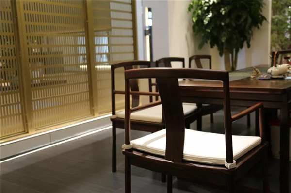 志成展位上的“達(dá)沃斯論壇、收藏級闊葉黃檀”….…等極具沖擊力的字眼,牢牢地吸引了眼光;潮閱核心“三原”工藝:原傳統(tǒng)榫卯結(jié)構(gòu)、原木精磨工藝、原創(chuàng)設(shè)計“和”字紋的工藝?yán)砟?,也為賓客們留下了深刻的印象。