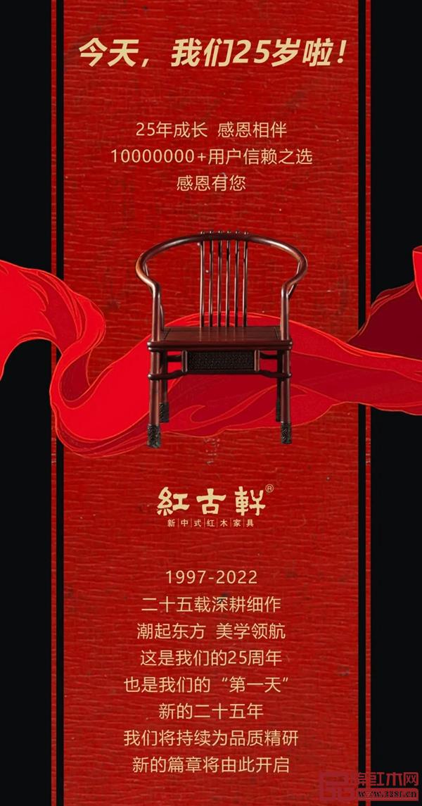 2022年,紅古軒提出新五年戰(zhàn)略規(guī)劃。以25周年活動(dòng)為契機(jī),邀請各位“老友記”一起見證紅古軒發(fā)展的新起點(diǎn),共同期待紅古軒作為“高端紅木堅(jiān)守者”的未來!