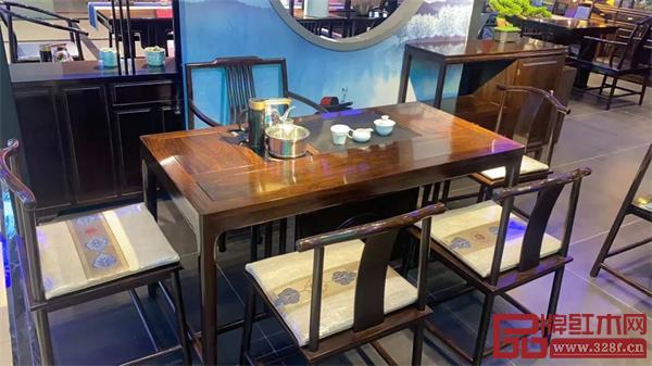 云錦軒茶臺家具沿襲傳統(tǒng)的制作工藝而成,展現(xiàn)出獨特的藝術(shù)美感和文化韻味。并且融合的科學(xué)的人體工學(xué)設(shè)計,努力為顧客提供一個新中式的茶室空間。