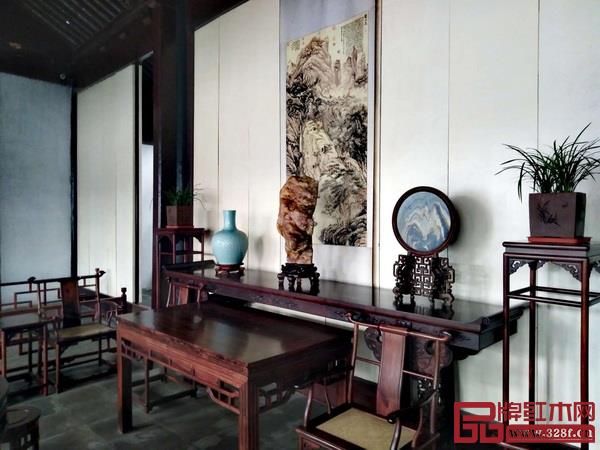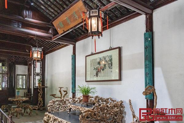 尤其是許多成堂整套的家具,為全國各地園林所不及,又使姑蘇庭園增添了鮮明的地方特色和獨(dú)特的裝飾風(fēng)味。如宴客聚友用的廳堂、小住起居的別院、讀書作畫用的齋館,以及坐憩游眺用的亭臺樓閣,配上各具特色的紅木家具,充分展示出姑蘇庭園不凡的造園藝術(shù)水平。