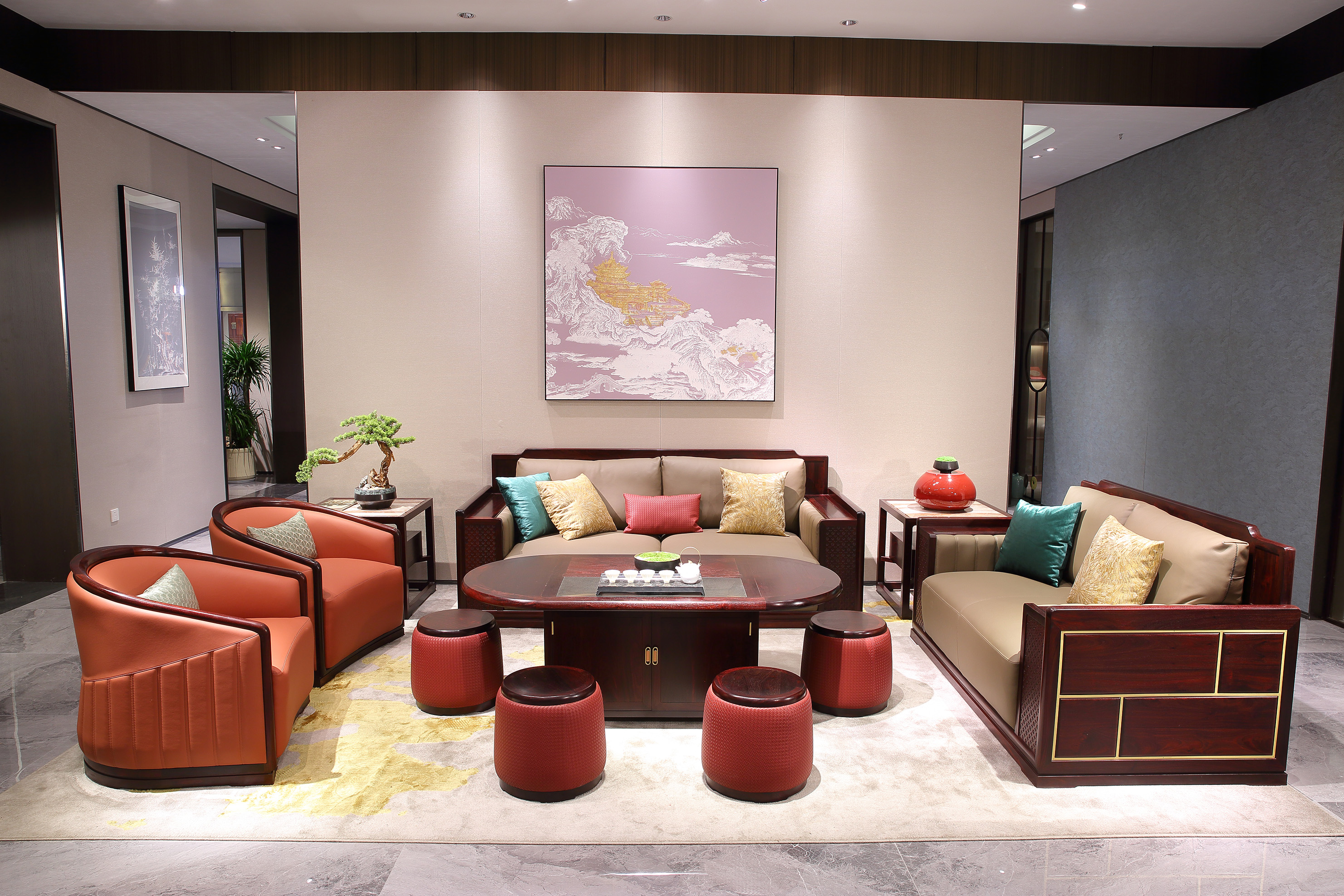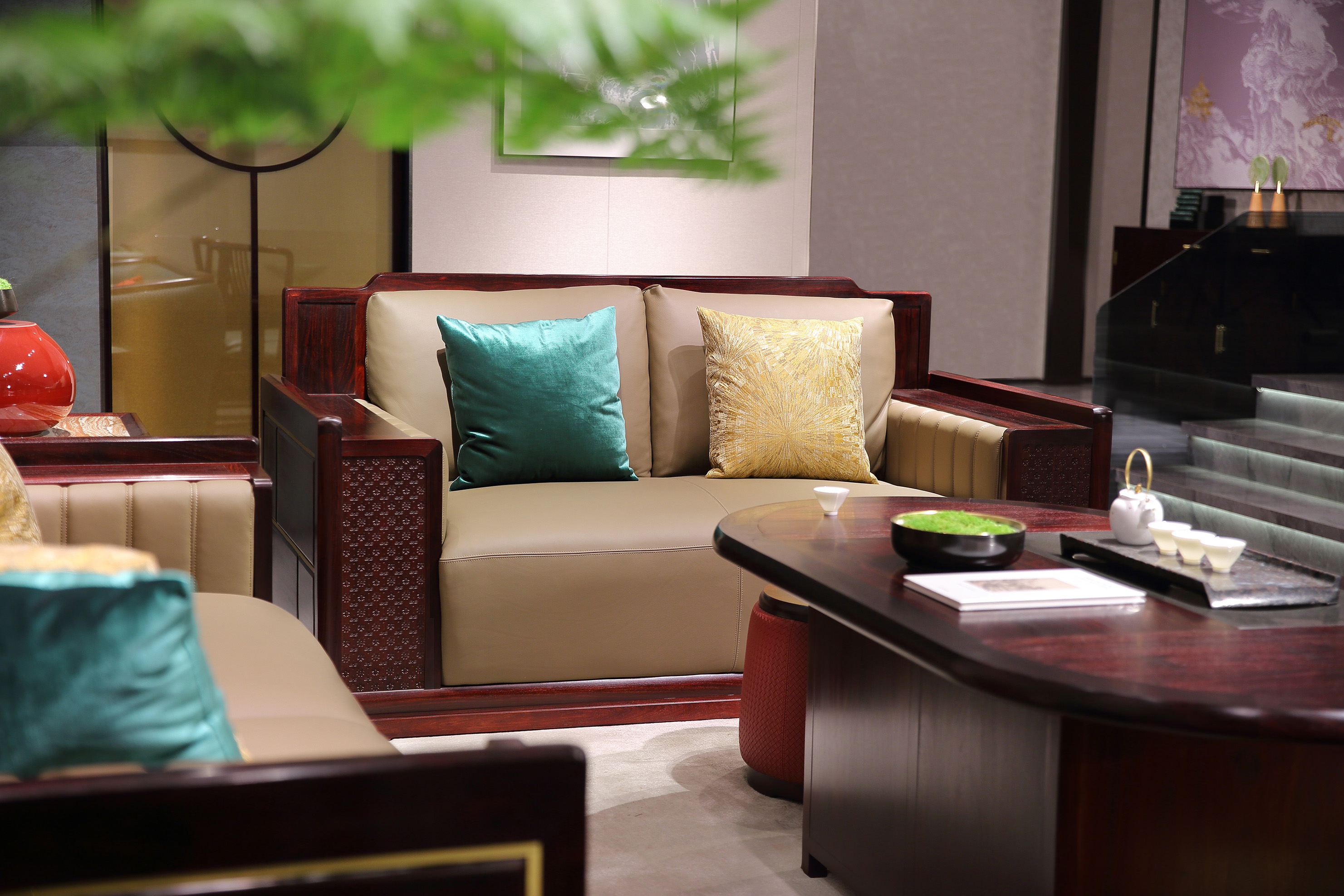 與架子床、博古柜、頂箱柜等古典家具不同,血檀沙發(fā)在現(xiàn)代客廳中扮演著一個不可或缺的重要角色。