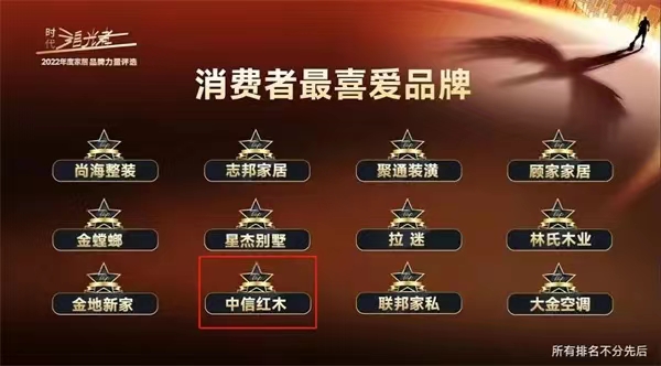 中信紅木榮膺“2022家居品牌力量榜-消費(fèi)者最喜愛品牌”