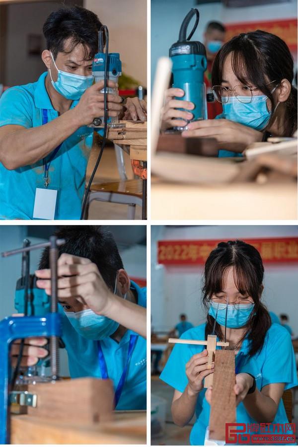比賽過程中,選手們嚴(yán)格按照規(guī)定的操作流程,發(fā)揚(yáng)平時(shí)制作家具時(shí)的細(xì)心、迅捷的優(yōu)良精神,對(duì)自己的技能自信滿滿、鎮(zhèn)定自若地進(jìn)行零件組裝,雙手相互配合、眼疾手快、緊張有序的忙碌著。