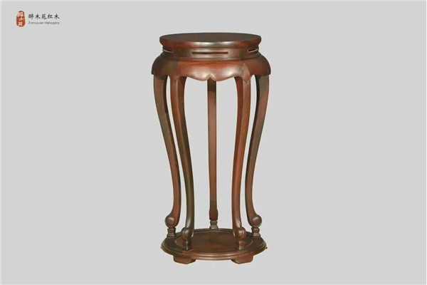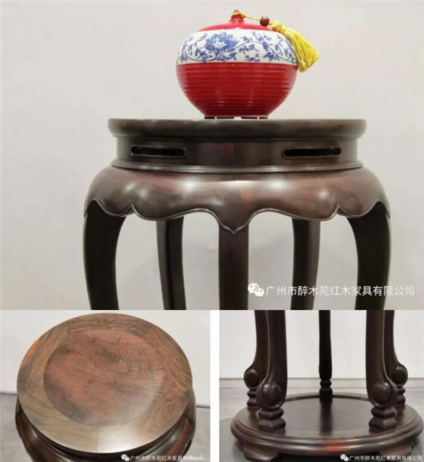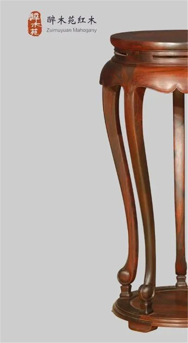 醉木苑紅木此款五足圓香幾(獨板)依托明式經典·靈秀五足圓香幾為創(chuàng)作藍本,參考美國加州中國古典家具博物館舊藏的《黃花梨五足香幾》的造型特征,加以創(chuàng)新改良,選用上乘的交趾黃檀(老撾大紅酸枝)獨板大料制作而成。