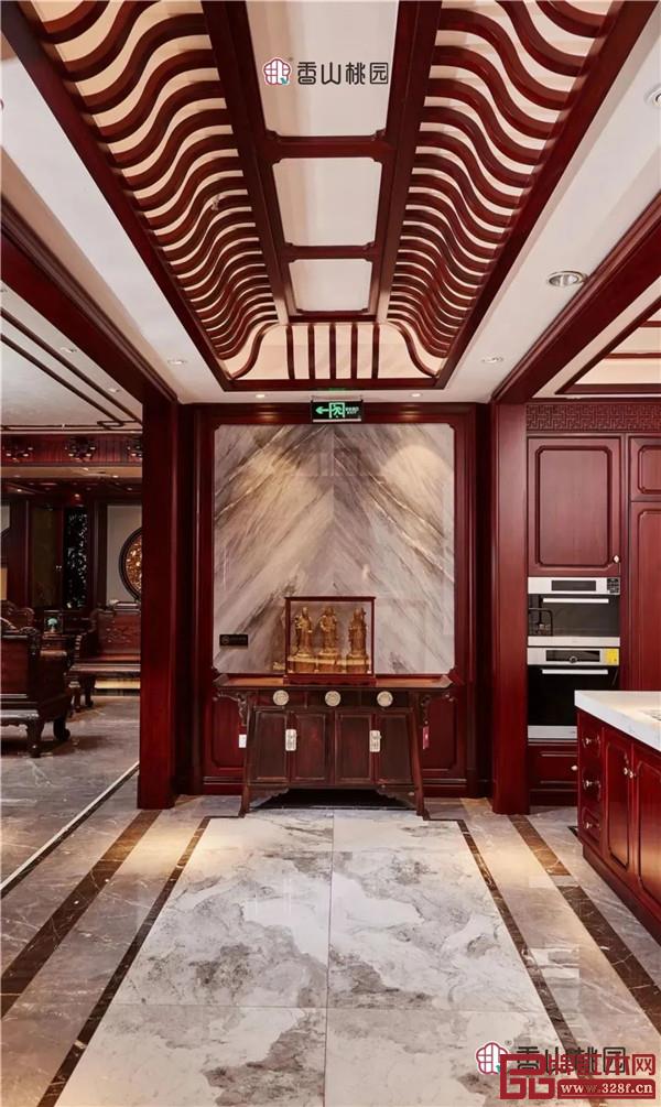 鮮明的空間色調(diào),紅木的天然雅致完美契合,尊奢大氣,巧妙傳達(dá)著居室主人的審美。