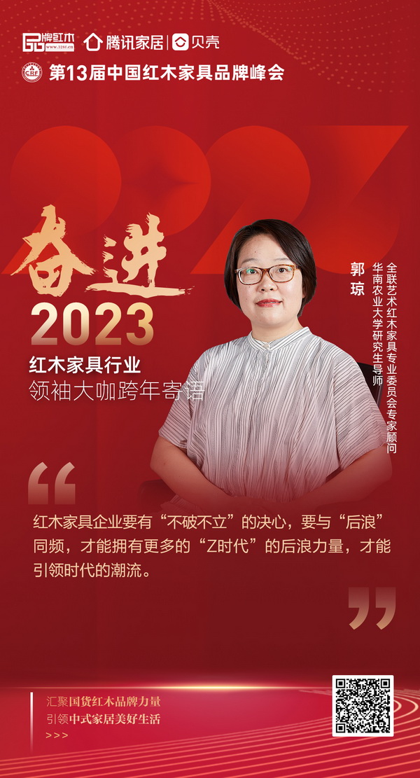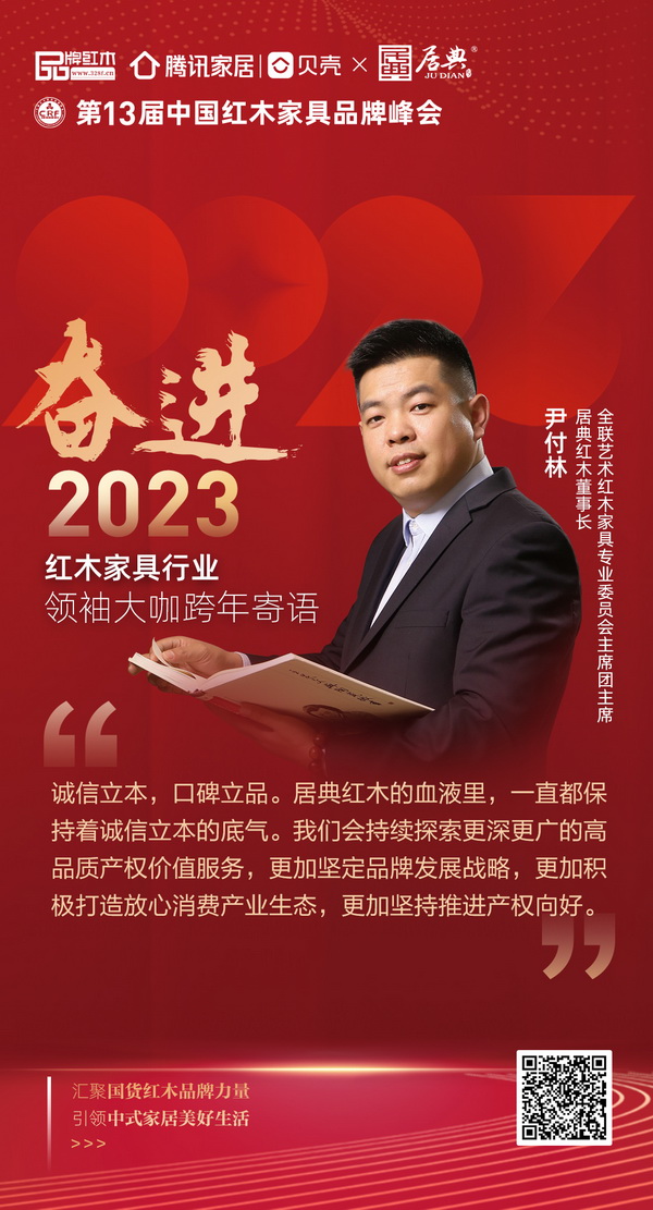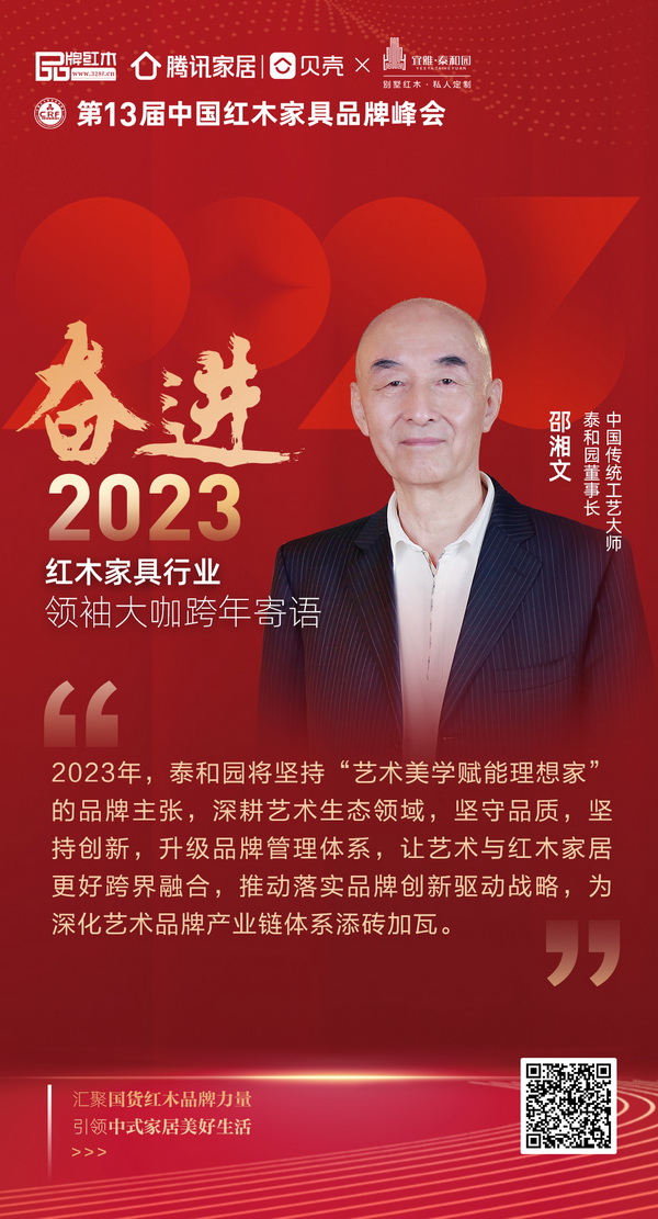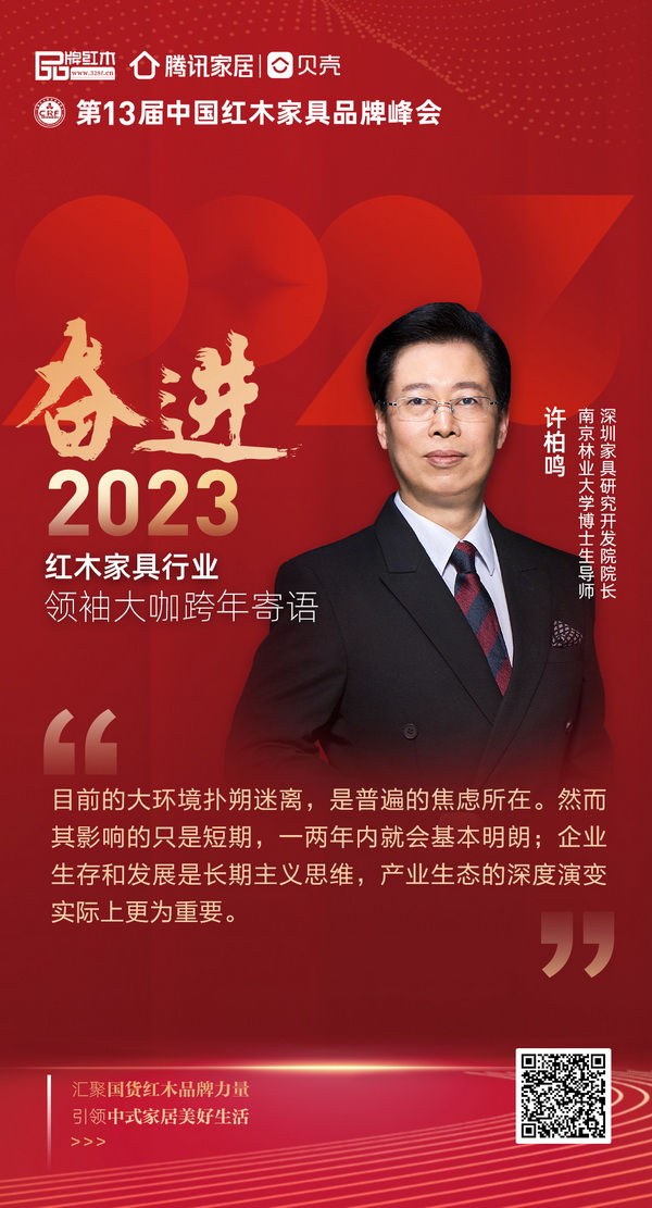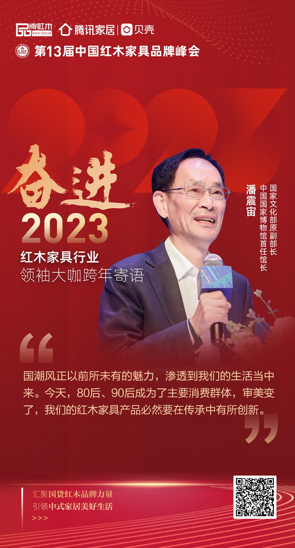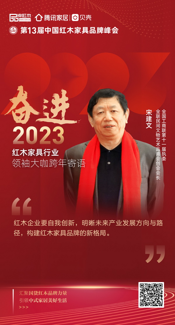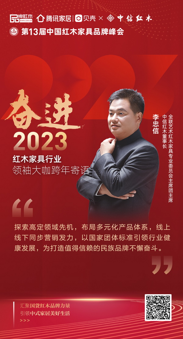 在跨年之際,品牌紅木、騰訊家居|貝殼特別策劃,第13屆中國(guó)紅木家具品牌峰會(huì)攜手各大業(yè)內(nèi)專家及品牌大咖向廣大業(yè)界人士,發(fā)起“奮進(jìn)2023 紅木家具行業(yè)領(lǐng)袖大咖(品牌精英)跨年寄語(yǔ)”,為全行業(yè)匯聚國(guó)貨紅木品牌力量,引領(lǐng)中式家居美好生活!