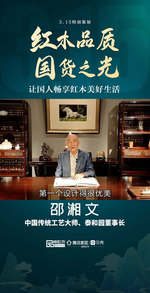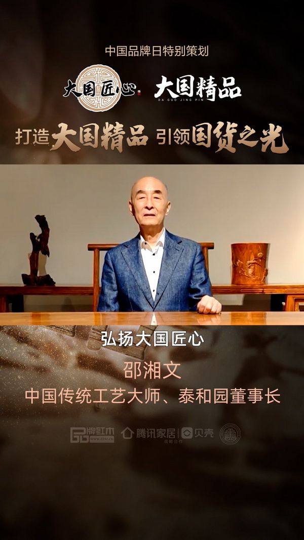 為此,品牌紅木聯(lián)合騰訊家居|貝殼,與一眾紅木品牌大咖發(fā)聲,中國(guó)傳統(tǒng)工藝大師、泰和園董事長(zhǎng)邵湘文打call,致敬中國(guó)品牌日。