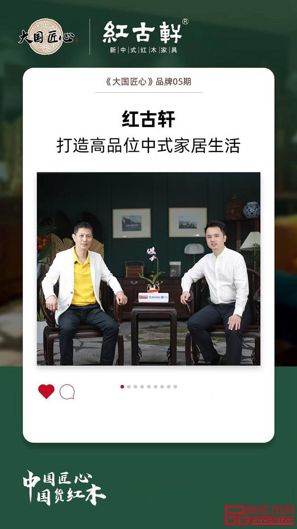 7月,由品牌紅木策劃,全聯(lián)民間文物藝術(shù)品商會藝術(shù)紅木家具專業(yè)委員會共同推動的高端權(quán)威欄目《大國匠心》走進大國匠心品牌紅古軒,一同感受紅古軒作為新中式紅木家具創(chuàng)領(lǐng)者的堅守與創(chuàng)新。