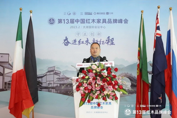 “深耕紅木行業(yè)三十余年,他睿智果敢,積極探索,帶領(lǐng)企業(yè)審時(shí)度勢(shì),勇毅前行。他熱愛(ài)紅木藝術(shù),醉心中式文化,勇做紅木新征程中的奮進(jìn)者?!边@是本次“紅品獎(jiǎng)”頒獎(jiǎng)典禮授予2022紅木家具十大風(fēng)云企業(yè)家——包海深的頒獎(jiǎng)詞。