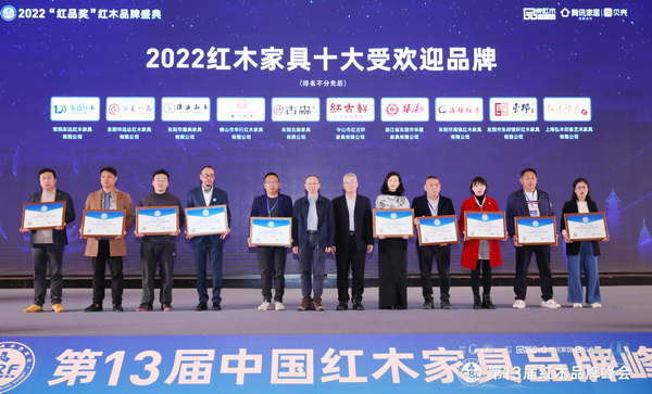 雅典紅木(左三)蟬聯(lián)“2022紅木家具十大受歡迎品牌”