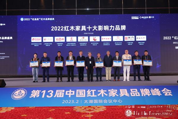 明堂紅木榮獲“2022紅木家具十大影響力品牌”(左五)