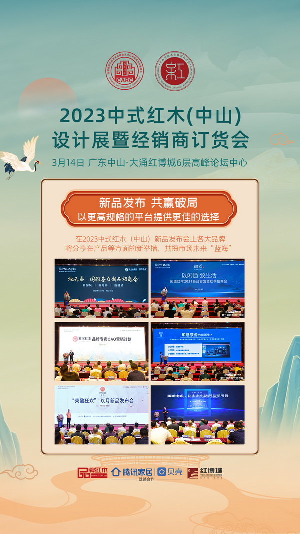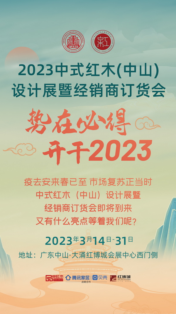 3月14日-31日,由全國(guó)工商聯(lián)民間文物藝術(shù)品商會(huì)藝術(shù)紅木家具專(zhuān)業(yè)委員會(huì)主辦,品牌紅木、騰訊家居|貝殼、中國(guó)(大涌)紅木文化博覽城承辦的2023中式紅木(中山)設(shè)計(jì)展暨經(jīng)銷(xiāo)商訂貨會(huì),將于廣東省中山市中國(guó)(大涌)紅木文化博覽城舉行。