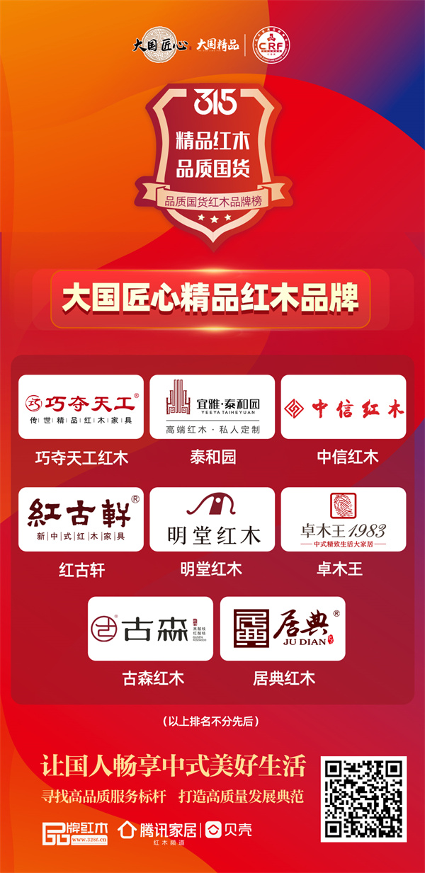 [摘要]315品質(zhì)國(guó)貨紅木品牌榜—大國(guó)匠心精品紅木品牌