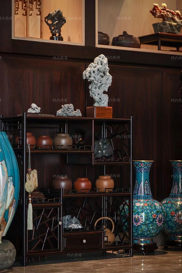 其次,若空間有余地,定要布置一組架格。游歷四方,喜集玩物,勿論中外,不問古今,不以價重,唯求趣深,隨陳茶室,自成佳景。
