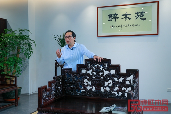 蔣念慈親臨醉木苑,對(duì)醉木苑《紫檀卷草紋寶座》進(jìn)行品鑒講解
